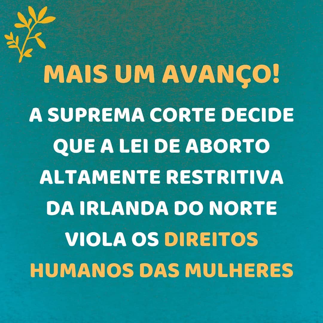 Mais um país reconhece o aborto como um direito humano das mulheres! A Justiça da Irlanda do Norte se pronunciou assim sobre o caso da norte-irlandesa Sarah Ewart, que não foi autorizada a abortar em 2013, embora estivesse grávida de um feto que não sobreviveria fora do útero. Ela conseguiu abortar na Inglaterra e, desde então, iniciou uma campanha para tentar mudar a legislação de seu país. A Irlanda do Norte proíbe o aborto em quase todos os casos – inclusive estupro e incesto. O aborto só é permitido quando há risco para a vida da mulher, ou sério risco para sua saúde física ou mental. Com isso, a Suprema Corte norte-irlandesa dá um passo importante para iniciar um processo de descriminalização do aborto no país. #nempresanemmorta