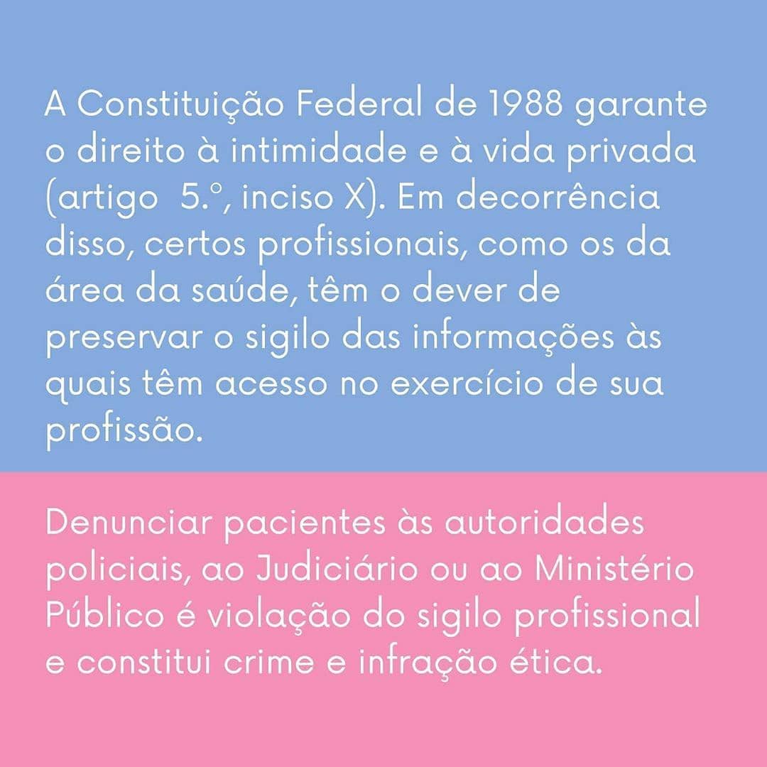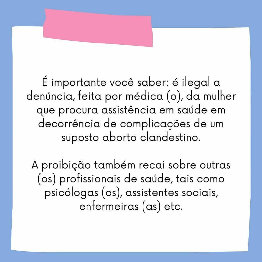 Via @nudem.pr Atendimento médico pós aborto, mesmo que ilegal, é direito da mulher e das pessoas com útero. O profissional de saúde que quebrar o sigilo e denunciar a paciente não só está quebrando o código de ética médica quanto pode ser criminalizado por isso.