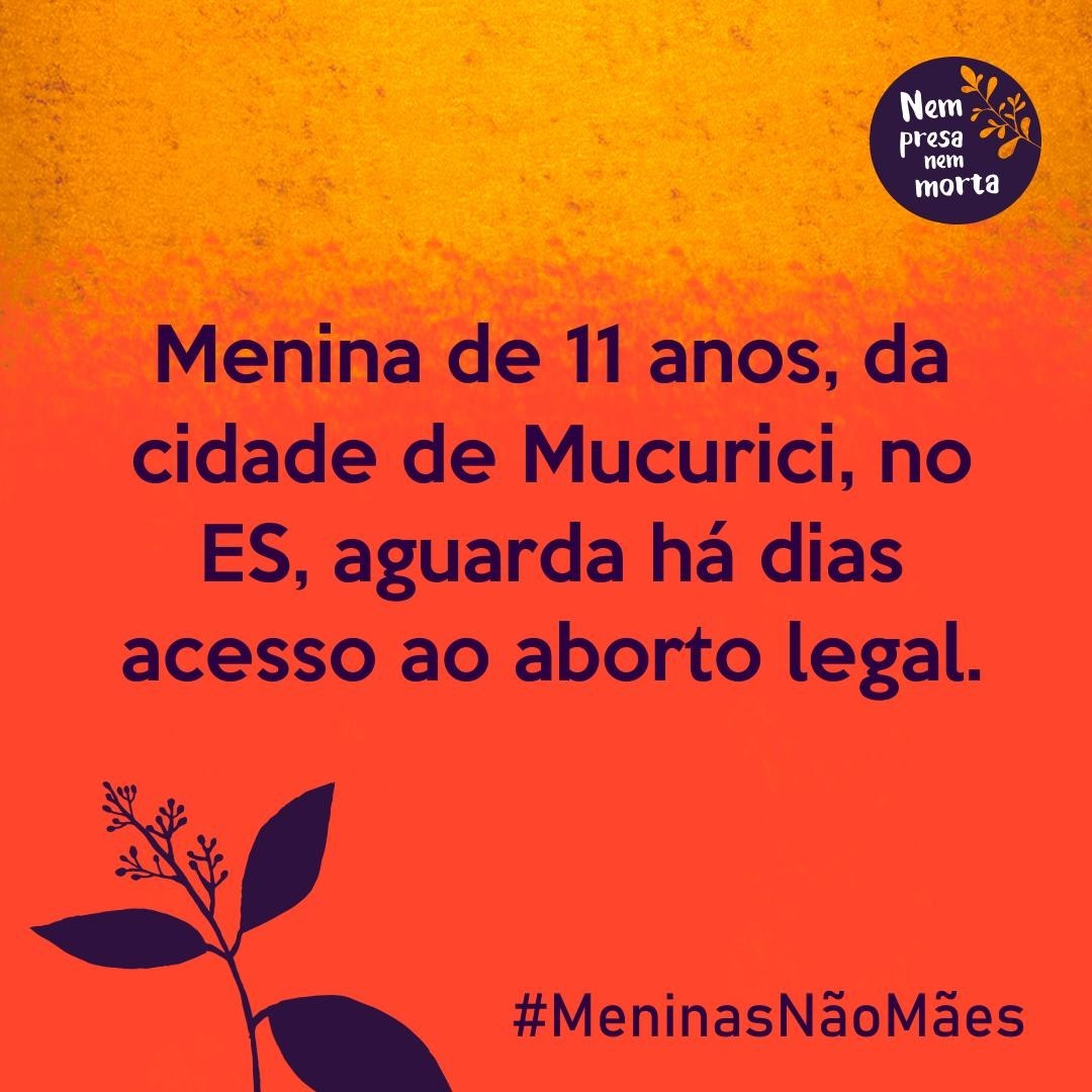 Desde o dia 27 de agosto a menina, grávida de aproximadamente 8 semanas, aguarda o acesso ao aborto legal! Há menos de 1 mês um caso semelhante, também no ES, mobilizou a sociedade e depois de muitos obstáculos o aborto legal foi garantido. Por que agora o aborto ainda não aconteceu? Qual a justificativa para postergar o acesso a um direito garantido há 80 anos? #AbortoLegal #MeninasNãoMães