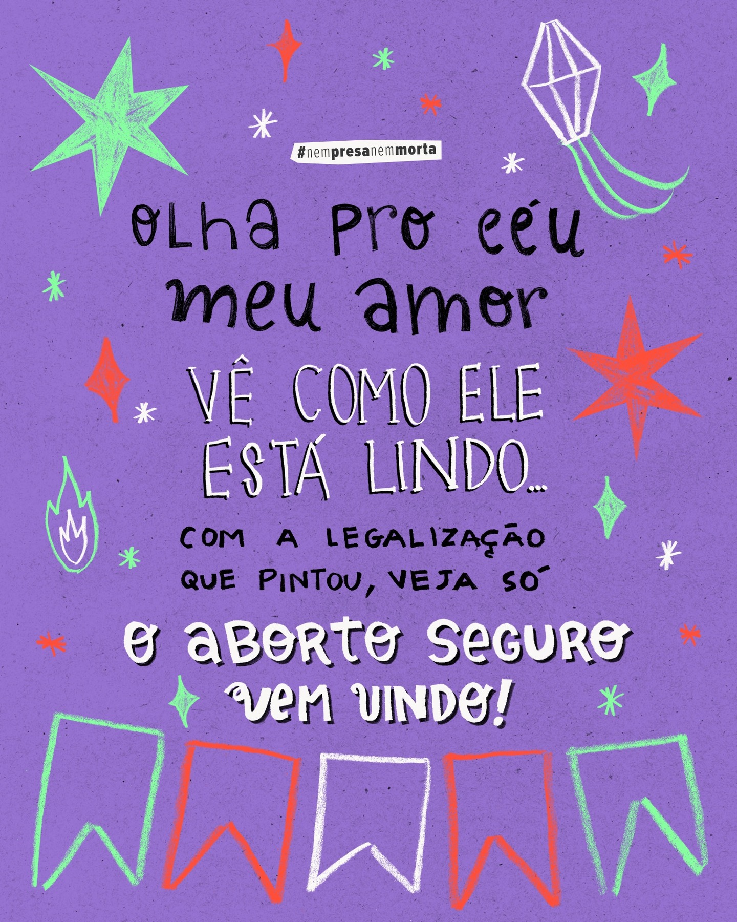A gente canta e dança com mania de ser feliz, pedindo ao Santo pra embalar nosso sonho: legalização do aborto já!